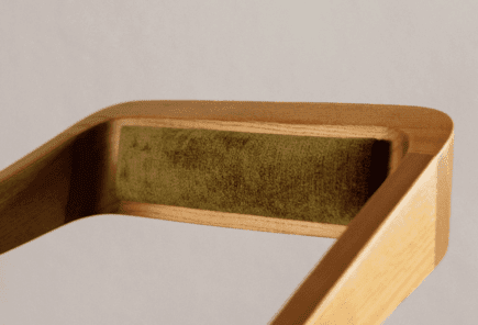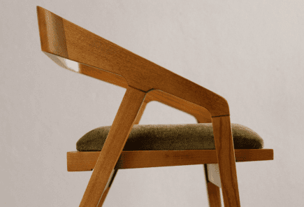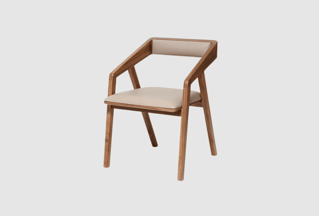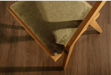 Cadeira estofada a tecido, com pés em madeira de freixo
