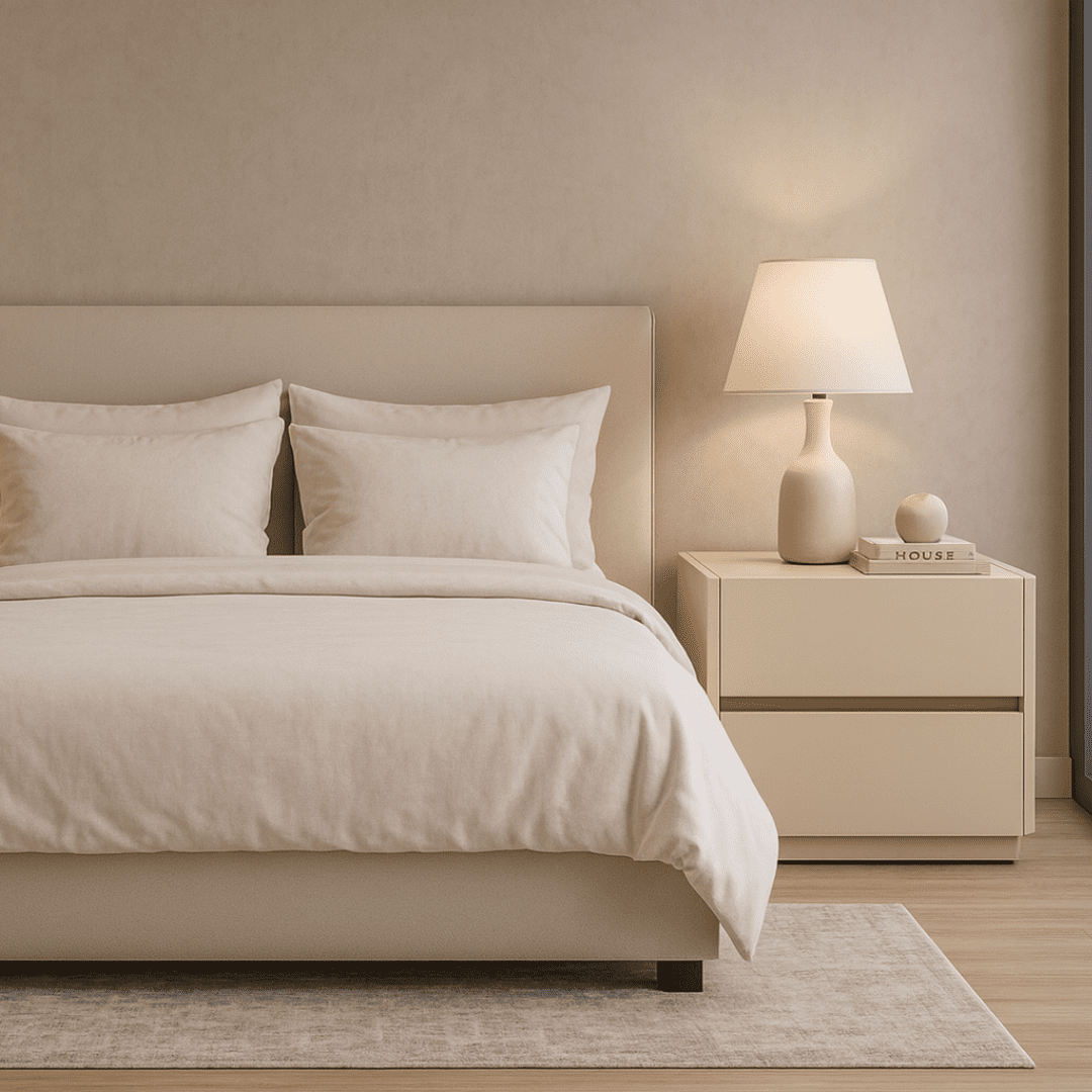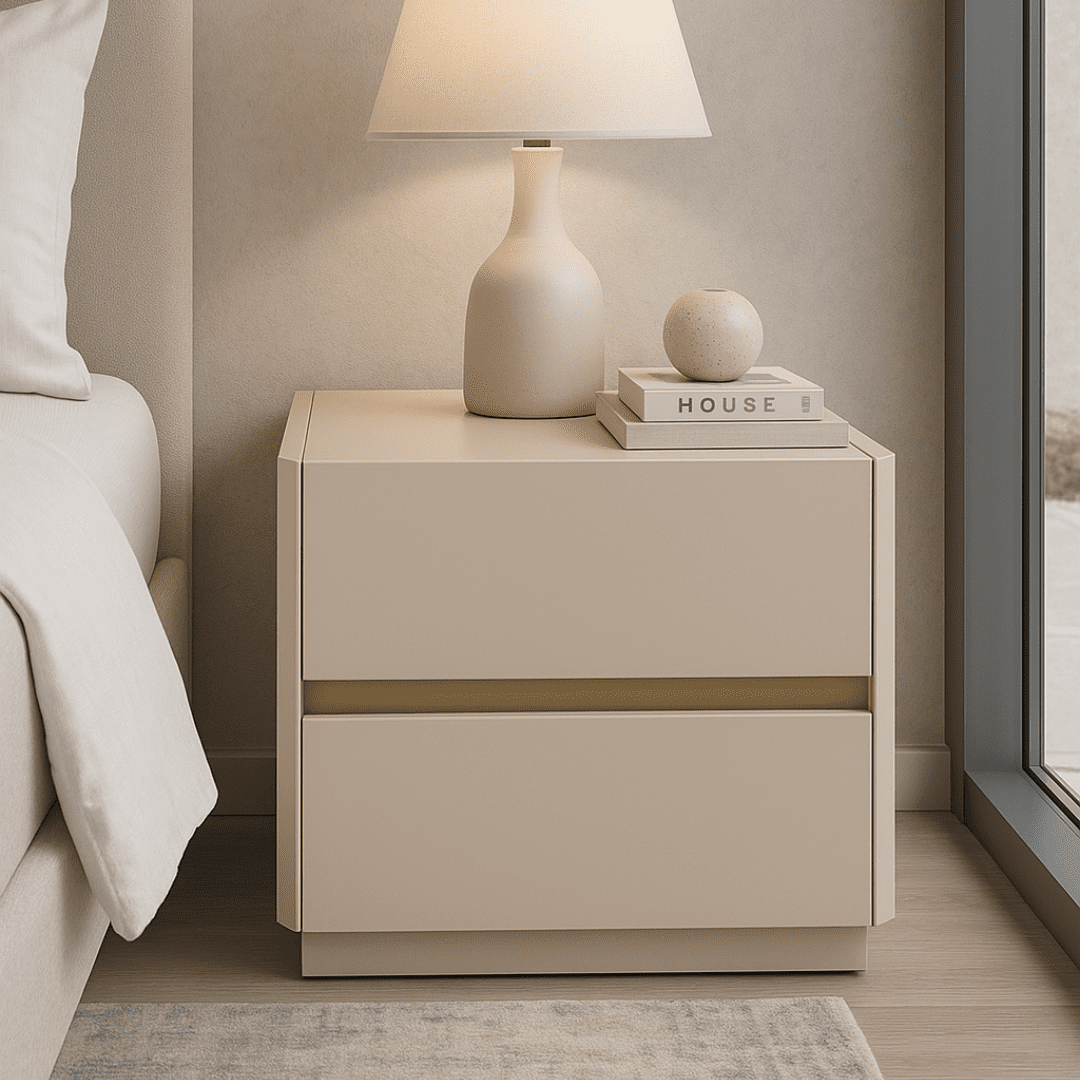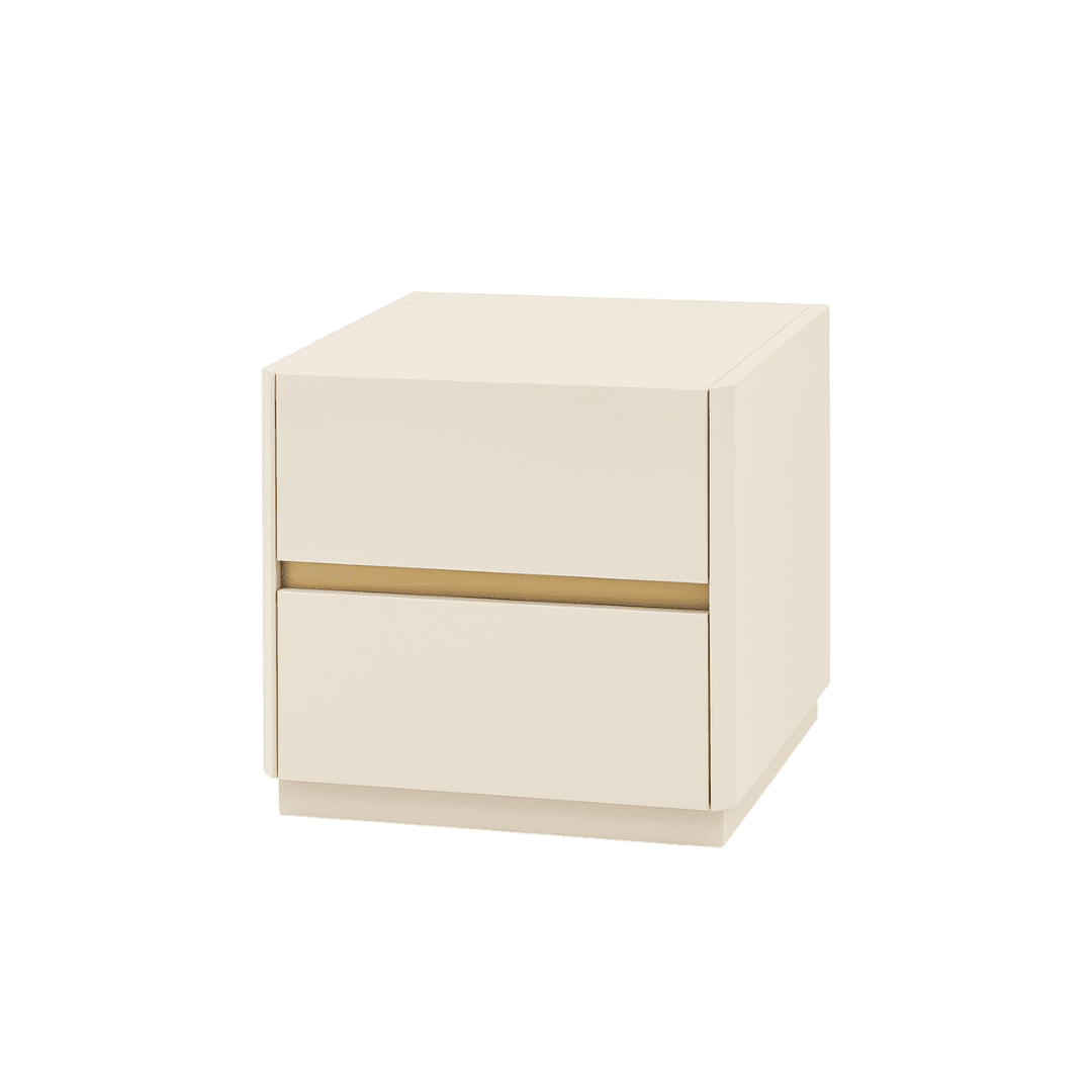 Mesinha de cabeceira moderna lacada a creme, com um design minimalista e elegante que se adapta facilmente a qualquer quarto. As 2 gavetas espaçosas permitem guardar tudo o que precisas ao lado da cama, mantendo o ambiente sempre limpo e organizado.