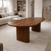 Mesa de jantar em carvalho natural, com design contemporâneo e linhas limpas.